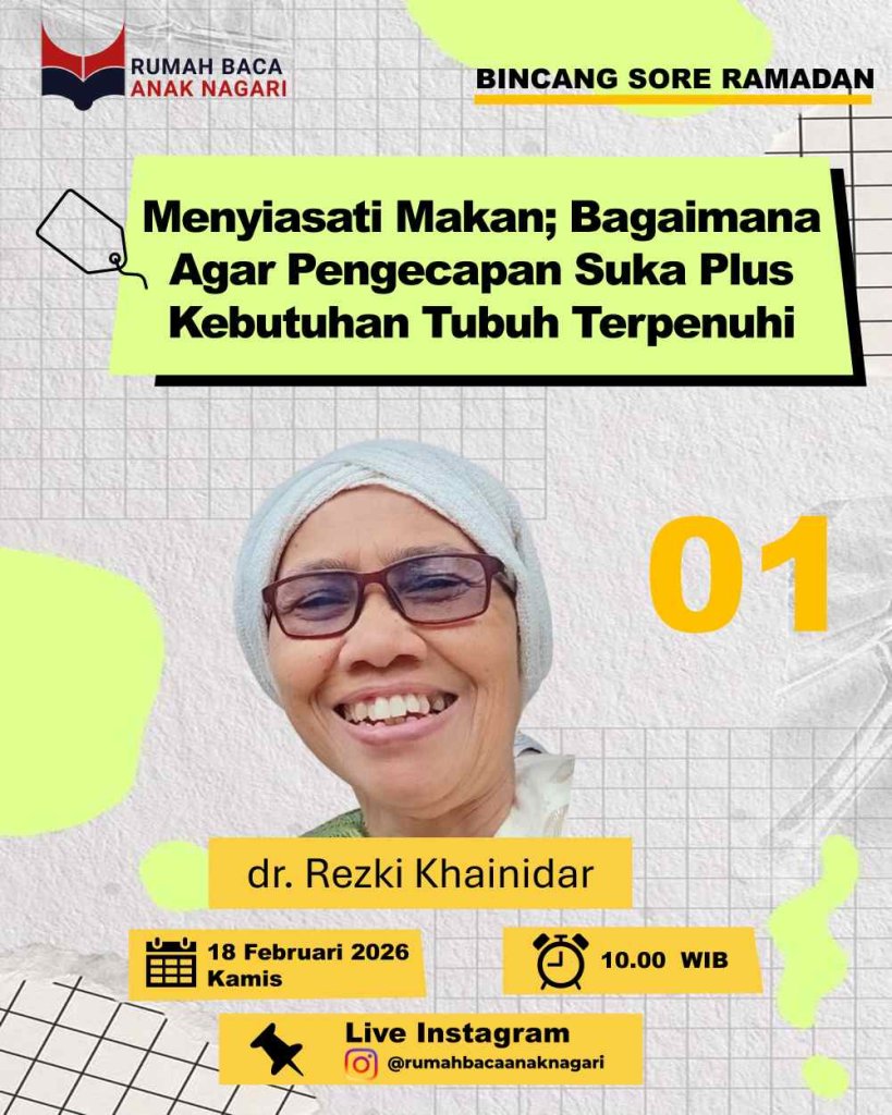 Rumah Baca Anak Nagari (RBAN) kembali menghadirkan program tahunan Bincang Sore Ramadan pada tahun 2026. Program yang digagas oleh komunitas baca yang berdiri sejak 2017 ini telah memasuki tahun keenam penyelenggaraan sejak pertama kali dilaksanakan pada 2020. Hingga kini, Bincang Sore Ramadan terus menjadi ruang berbagi inspirasi dan praktik baik bagi pegiat literasi di berbagai daerah di Indonesia.